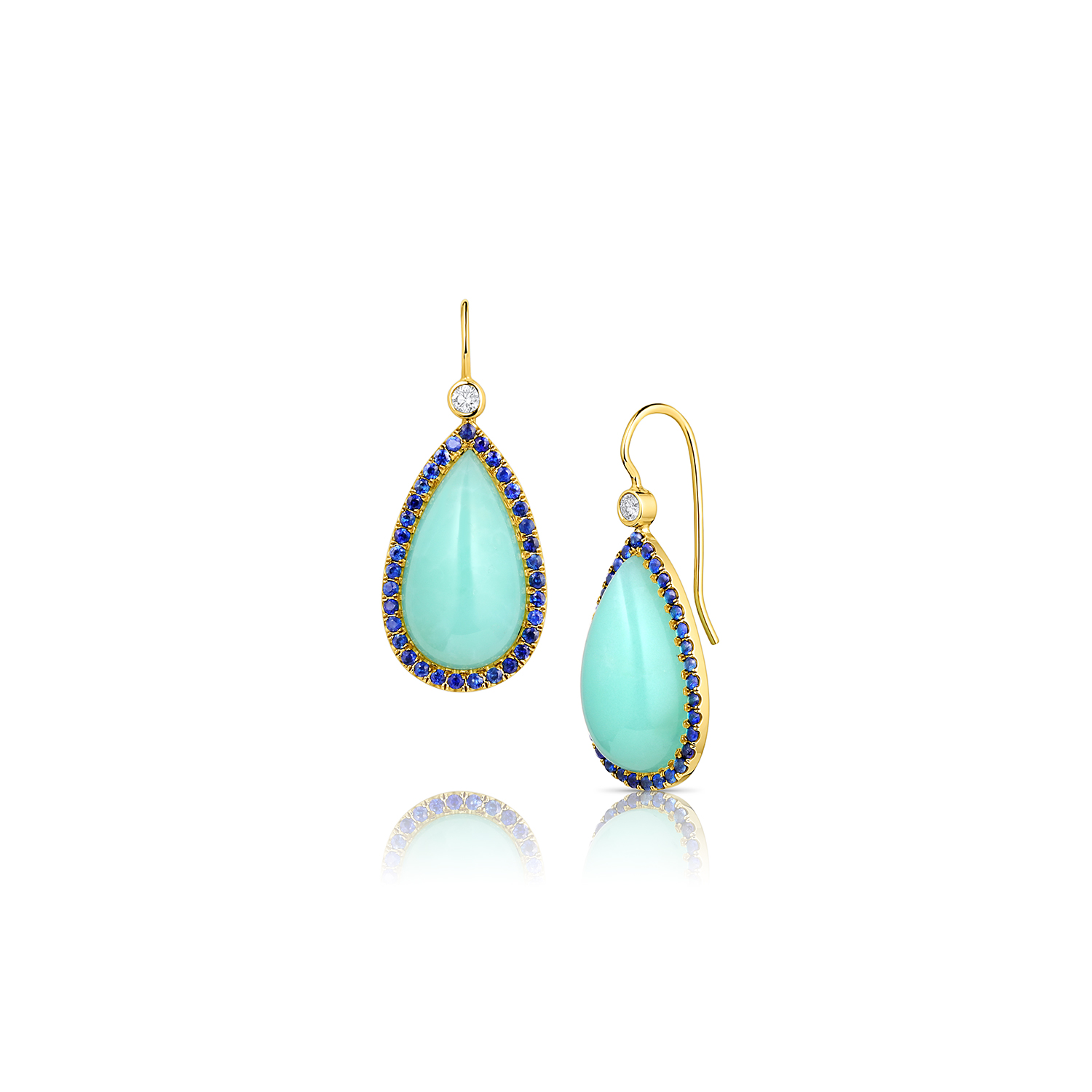 $4,228.0010 carats chrysophase pear shape with blue sapphires. With 10 pointer natural diamond. 18k handmade