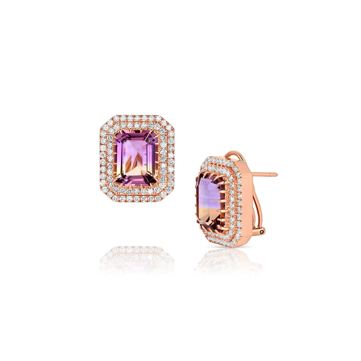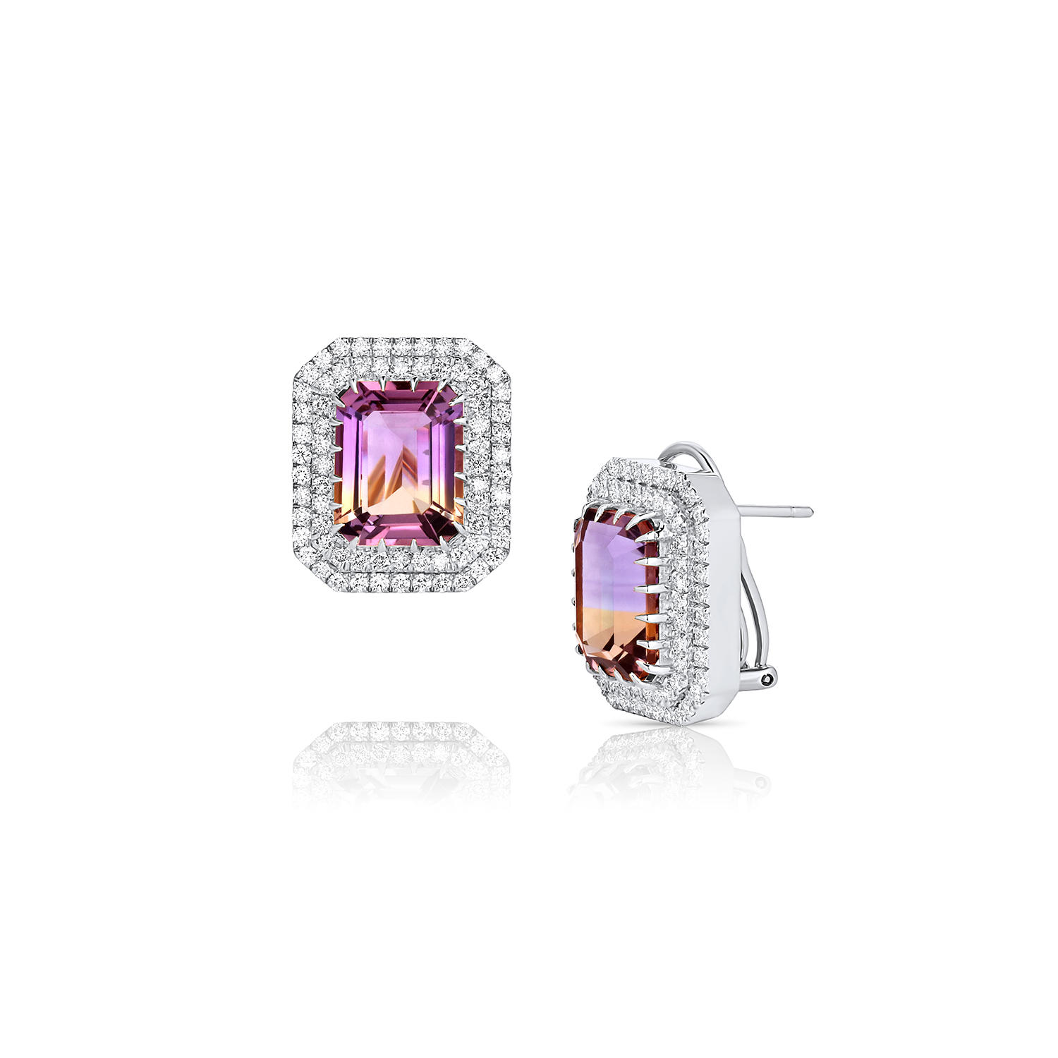 Emerald Cut Ametrine Natural Stones With Diamonds