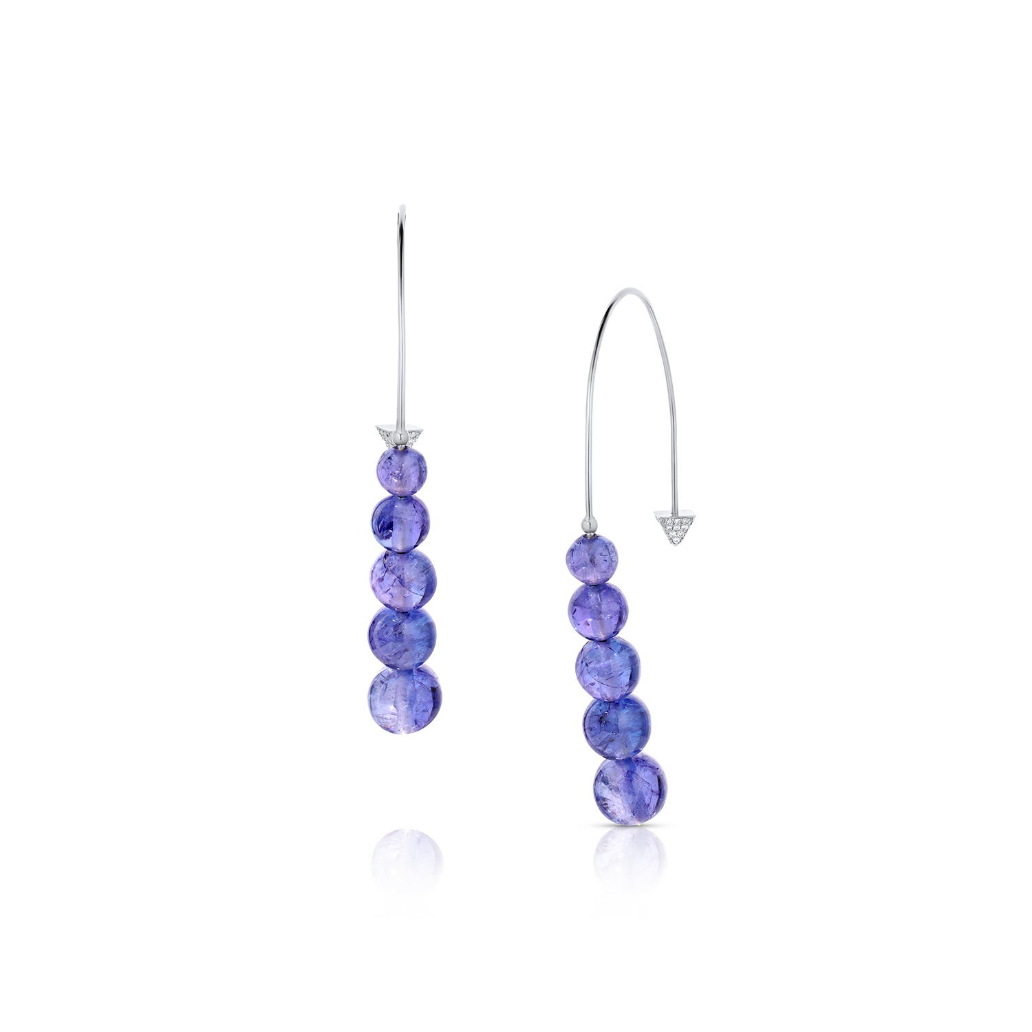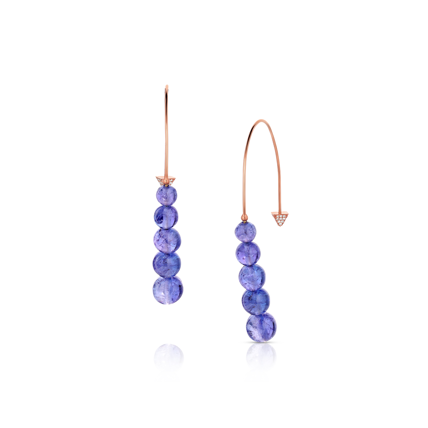 Wire hoop with blue tanzanite balls with diamond pyramid.