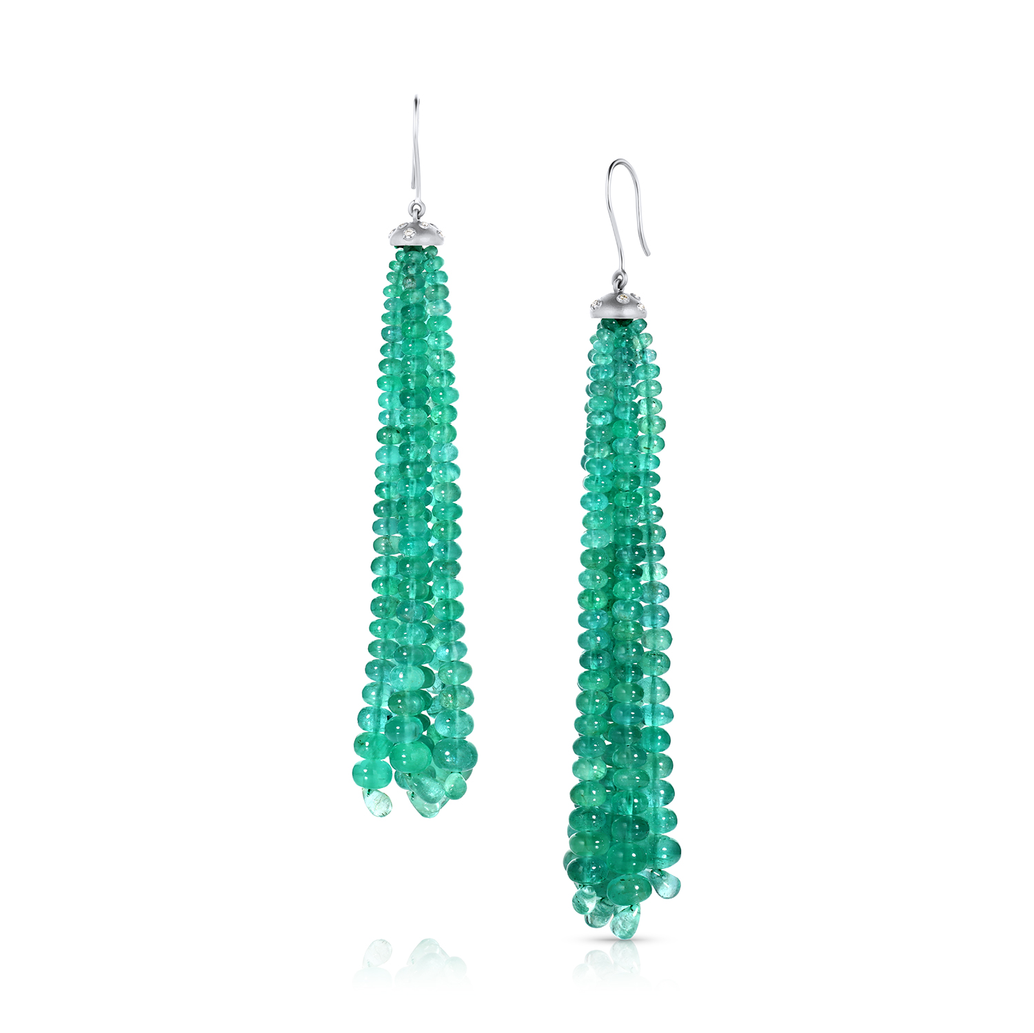 Zambian Emerald tassel earrings, 190 Carats total weight.