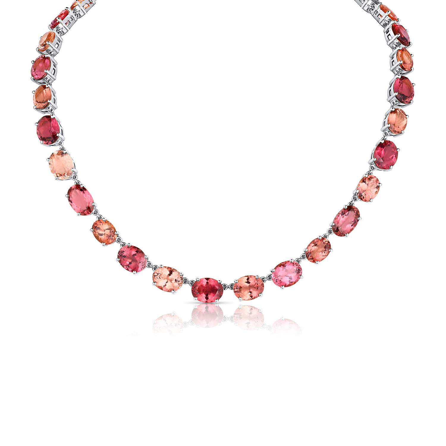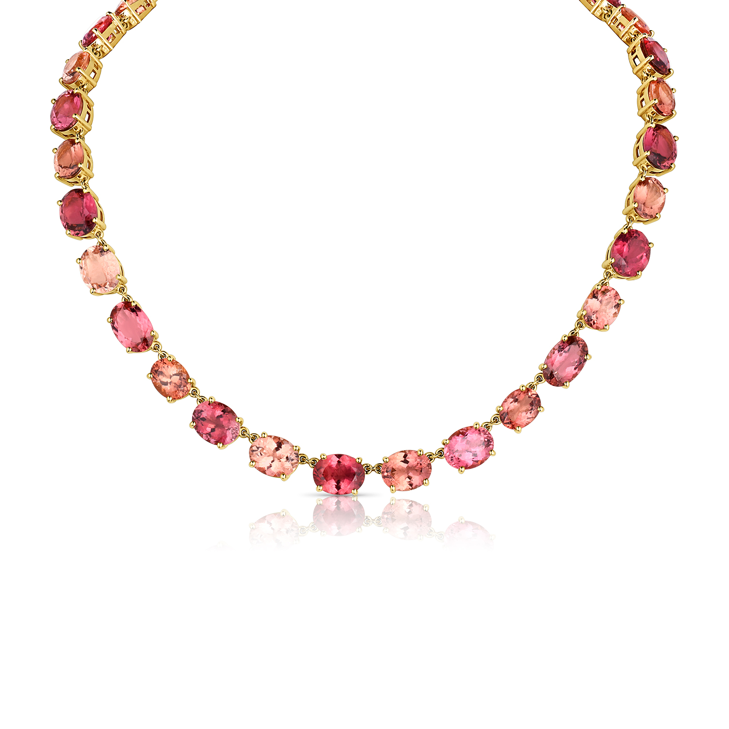 Oval stones weighing 67.27 carats. 16 inches. Hand made. 18K